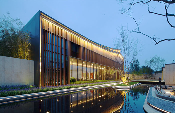 以薈萃城市頂級(jí)資源,引領(lǐng)城市未來居住所向?yàn)橹髦肌A⒚骘L(fēng)格上,住宅以新中式風(fēng)格為主調(diào),形體上采用對(duì)稱的構(gòu)圖,主體顏色采用米白色與淺灰色,整齊大氣的立面能夠規(guī)整城市沿街面,提升城市形象。