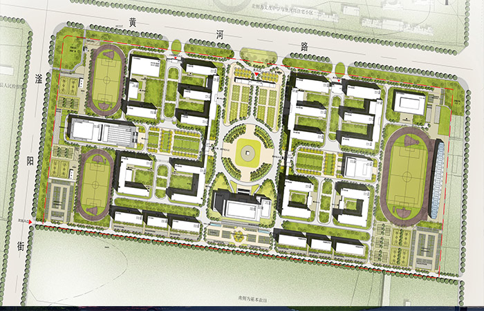 項目景觀延續(xù)規(guī)劃主軸,場地中央設(shè)置核心景觀區(qū),各教學(xué)及生活組團分別設(shè)置組團景觀,根據(jù)不同的空間序列,營造禮儀景觀軸,打造多個景觀節(jié)點,形成深層次,多維度的景觀體系。