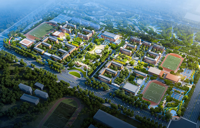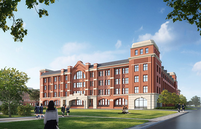 本項目對標(biāo)國內(nèi)外多所一貫制學(xué)校項目,深度考察,結(jié)合隆堯地處華北大地風(fēng)貌條件,濃縮出以新古典主義為學(xué)校基調(diào),融合現(xiàn)代元素,打造“容貌端莊,理性簡潔”的建筑形式,塑造高品質(zhì)的現(xiàn)代建筑組群形象。
