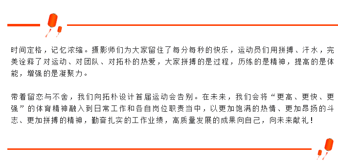 展現(xiàn)了拓樸設(shè)計(jì)團(tuán)結(jié)奮進(jìn)、勇于爭先的優(yōu)良風(fēng)貌!