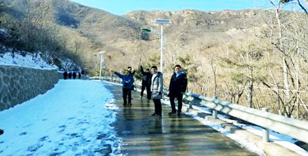 2019年2月16日,石家莊的白雪初化,陽光已是分外溫暖,正值開工的第一個周末,設(shè)備所舉行了西山森林公園登高戲雪活動。此時的西山森林公園內(nèi),半幅道路的雪已被清掃,半幅留有一些,空氣優(yōu)良,視野開闊,是登高舒意的絕好去處。