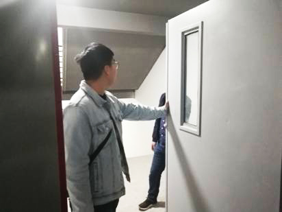 龍哥和銀元在研究防火門(mén)的安裝。