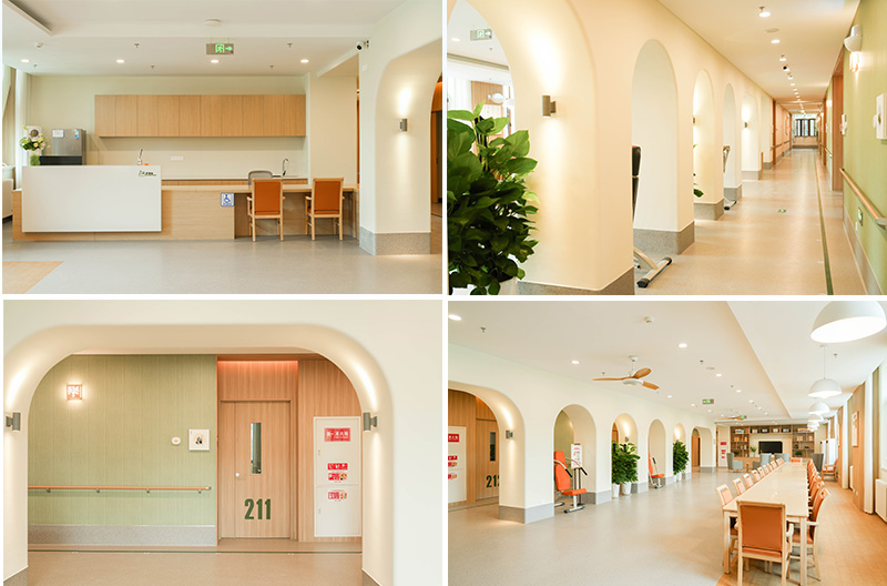 在適老化空間,我們結合老年人行為、心理等特性,認為在康氧環(huán)境中設置無障礙設施尤為重要,不僅僅體現(xiàn)于無障礙通道或電梯,還包括視線監(jiān)視與近便的服務動線設計。